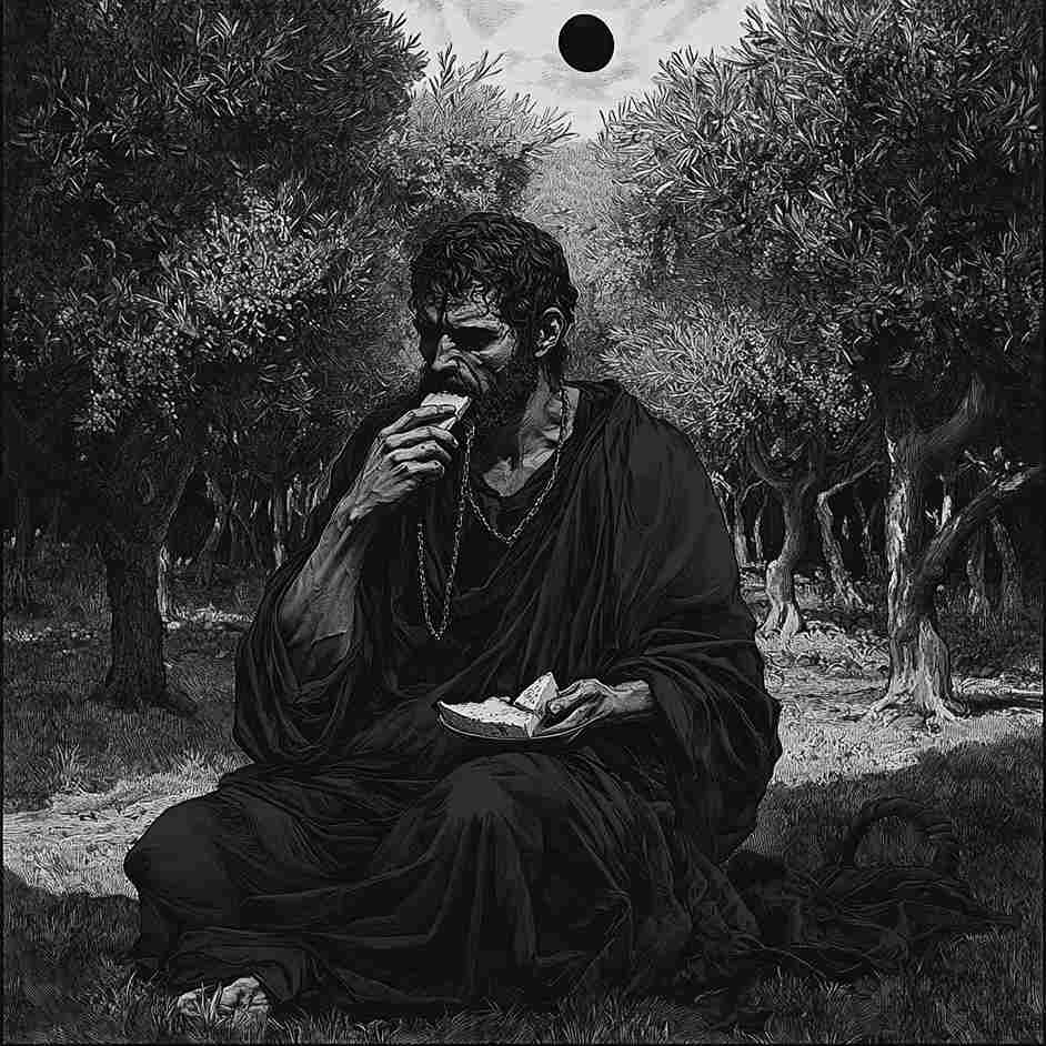 “I’m heading for Otia. Got a brother there who’s got work for me,” the man said in a loud, booming voice. “There’s room on the cart if you don’t mind me talking all the way,” he said, tying his beast to a wild olive tree. The mule tried to bite him and baulked again. “You little bastard,” he said. “You’re getting your food when I do. Pardon the language,” he said as he looked in the wrong direction. From the cart, he pulled a bag of food and placed it over the head of the animal before getting a blanket and food for himself. “You’re welcome to join,” the man called out as he spread out his blanket and sat down beneath the dappled shade of the silvery-green leaves of one of the many abandoned olive trees.